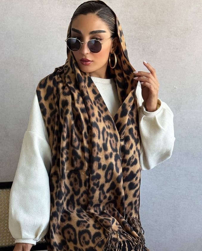 شال نخی زنانه طرح پلنگی